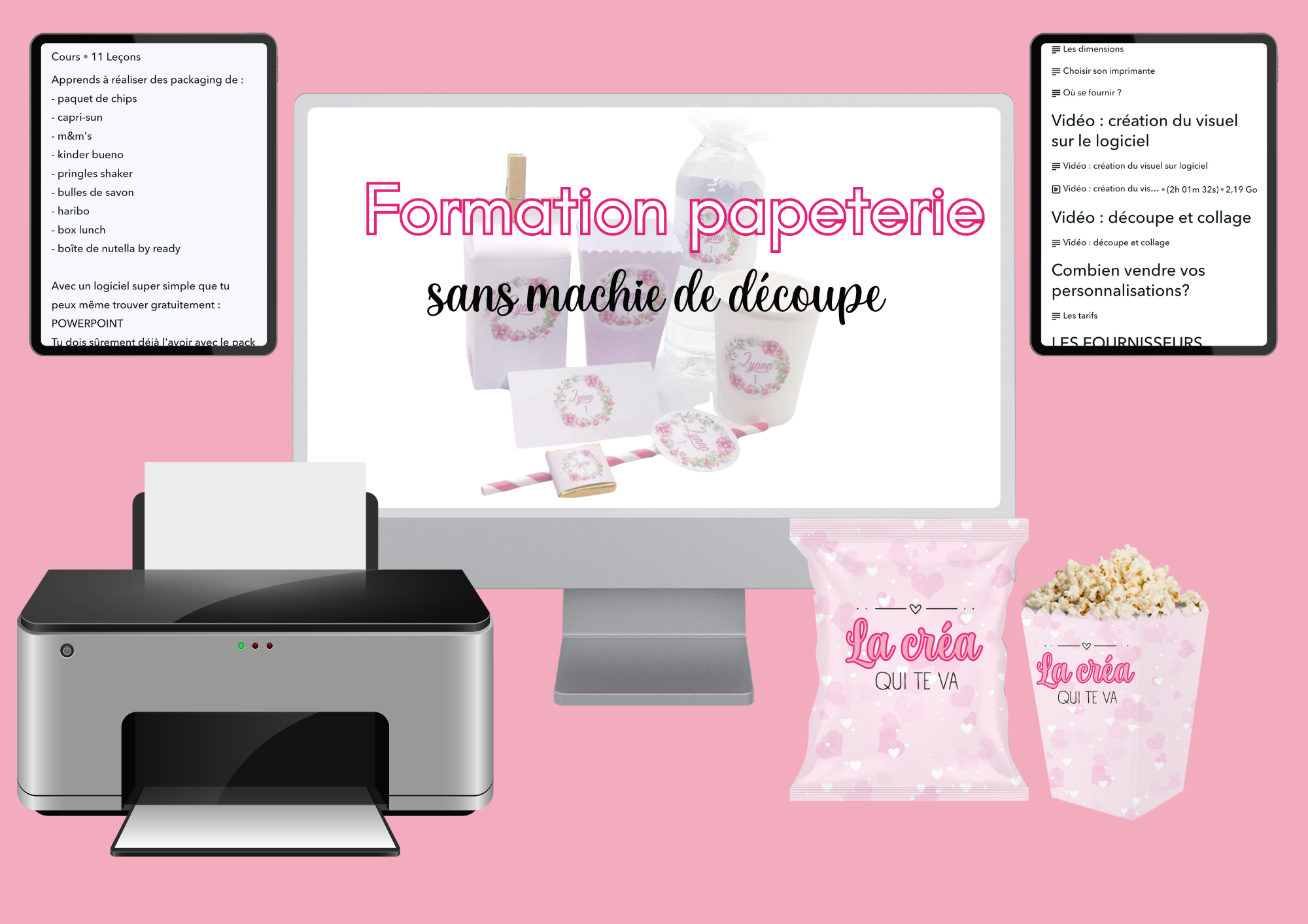 Ici, apprends à créer de la papeterie personnalisée, même sans machine de découpe ! Découvre comment te lancer dans un nouveau business créatif avec un petit budget, idéal pour démarrer facilement et à ton rythme. Mes formations sont très accessibles de prix, afin que le plus de femmes possible puisse se lancer.